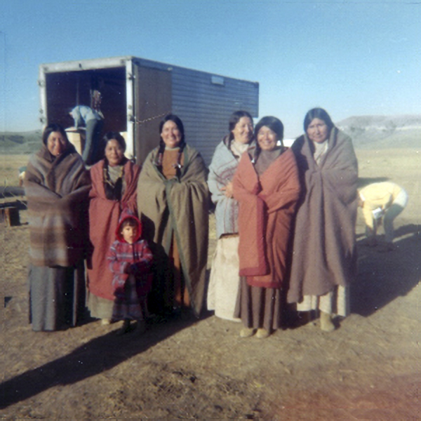 Allen Old Horn, Suzanne Old Horn, Mae Old Coyote, Amy Whiteman, Cheryl Sue Old Horn (girl), Dessie Bad Bear, Winona Yellowtail – Plenty Hoops (courtesy Victoria Bad Bear)