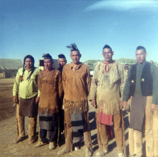 Third from left – Dale Old Horn, far right – Chester Medicine Crow, others unidentified (courtesy Victoria Bad Bear)