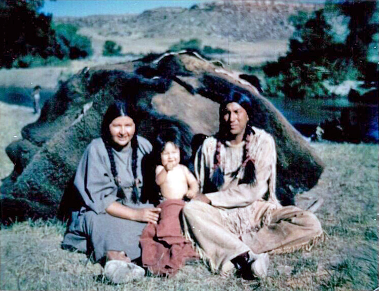 Jace Big Day (little boy on travois in movie), Dustin Hoffman (courtesy of Heywood & Mary Lou Big Day)